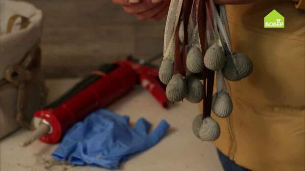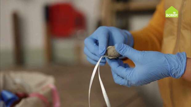Сделав петлю, приложите конец ленты, добавьте клея и закройте второй половиной ракушки.