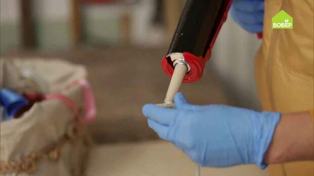 Возьмите одну половину ракушки, капните немного клея и приложите ленточку.