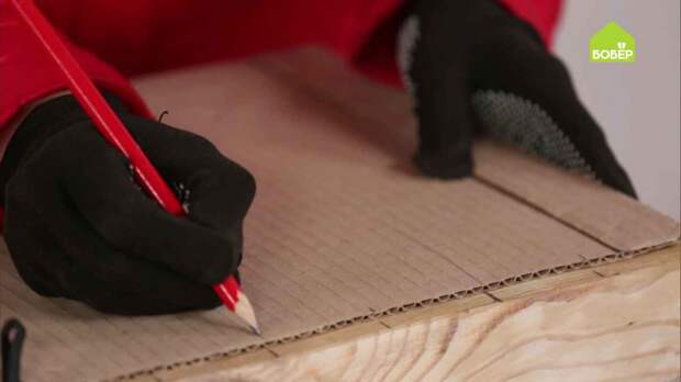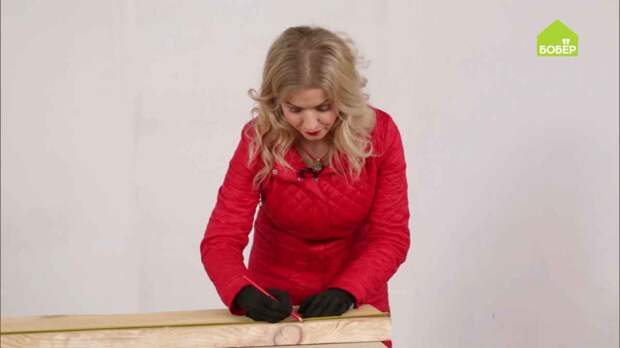 Длинная метка должна быть в половину ширины доски. В данном случае этот параметр составляет 20 см, значит длина большей метки будет 10 см, а меньшей — 5 см.