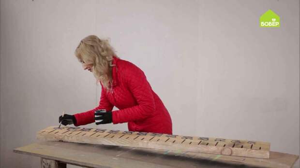 Разметьте доску длинными чёрточками с шагом 10 см, и короткими с шагом 5 см.