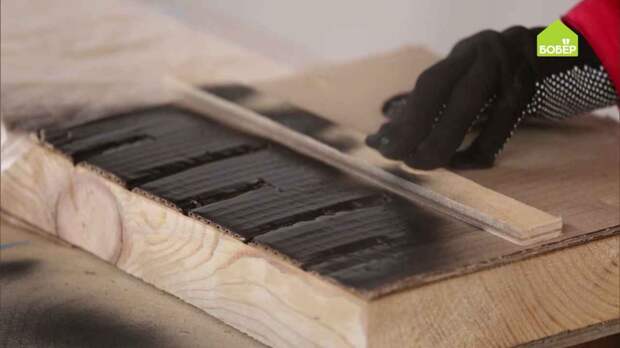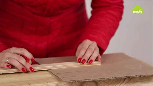 При помощи листа картона, карандаша и рейки сделайте трафарет для окрашивания доски: перенесите разметку на картон.