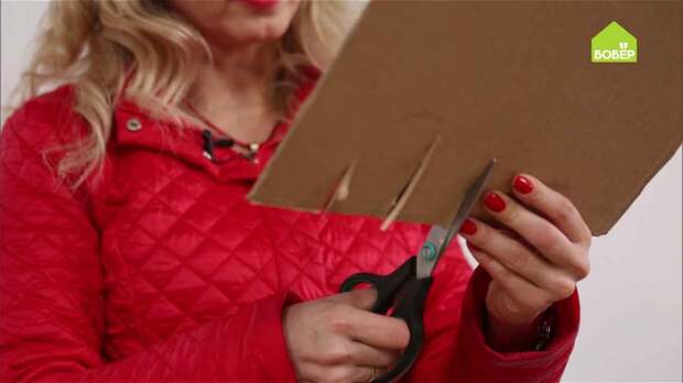 При помощи ножниц сделайте на шаблоне прорези по разметке, ширина которых составляет 5–7 мм.