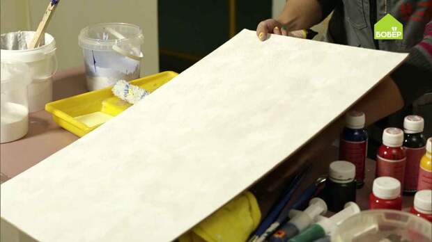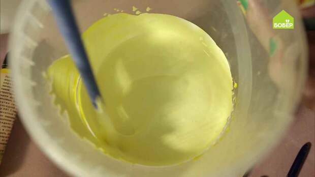 Возьмите палочку и тщательно перемешайте краску, чтобы в итоге получился однородный цвет. Важно помнить, что все материалы, которыми вы работаете на данной поверхности, должны быть одного производителя, чтобы потом не было отслоений.