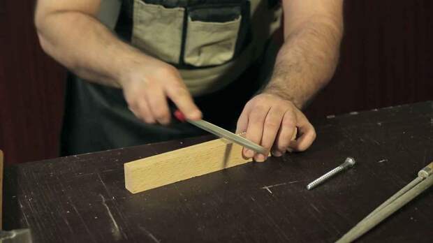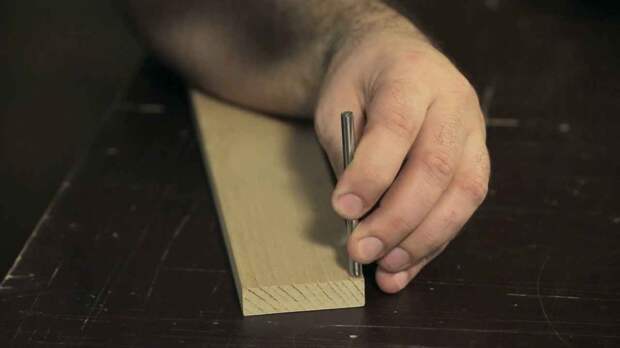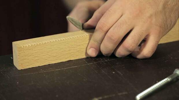 Интересную фактуру на древесине можно сделать с помощью обычной шпильки или гвоздя с закруглённой шляпкой. Для этого поставить шпильку на заготовку.