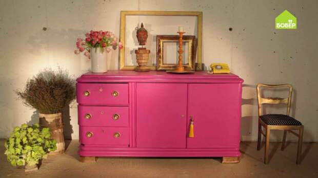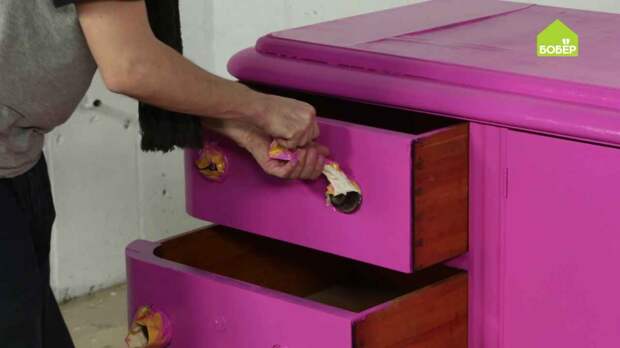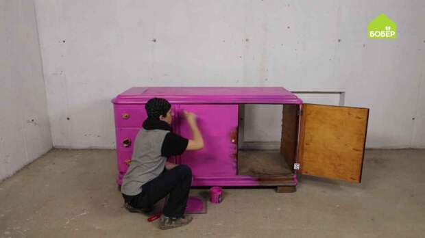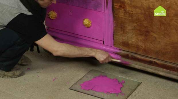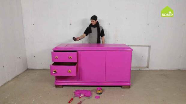 При помощи валика и кисти покрасьте комод в выбранный цвет.