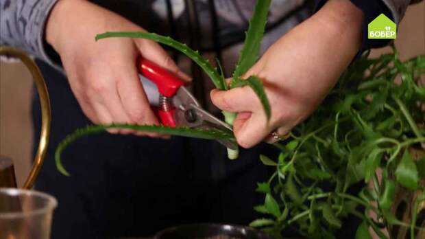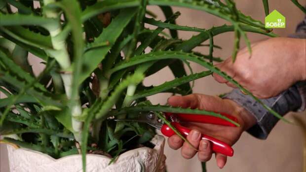 Отрежьте один из боковых побегов, чтобы проредить столетник.