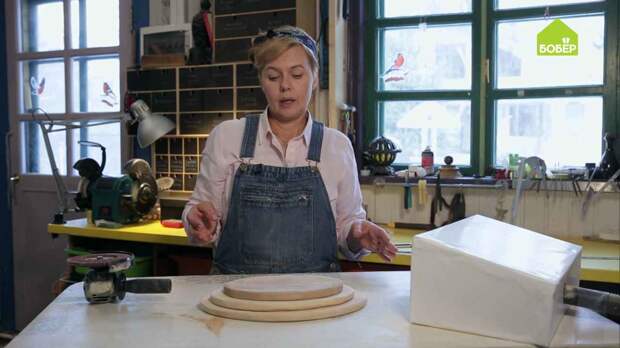 На всех деревянных заготовках начертите овал, поскольку в данном случае каждый ярус этажерки должен иметь овальную форму.