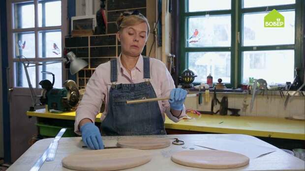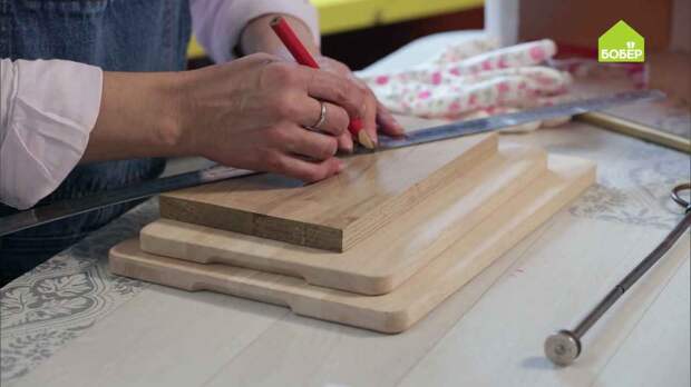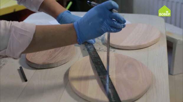 На каждой разделочной доске найдите центр, прочертив с помощью линейки и карандаша две диагонали.