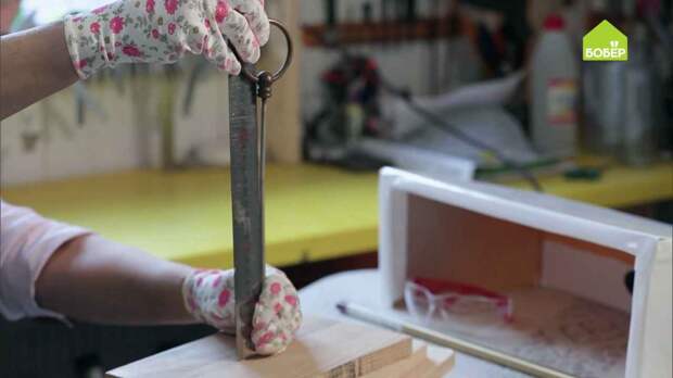Чтобы конструкция стояла ровно, на задней части самой нижней доски необходимо выбрать паз под крепёжную гайку.