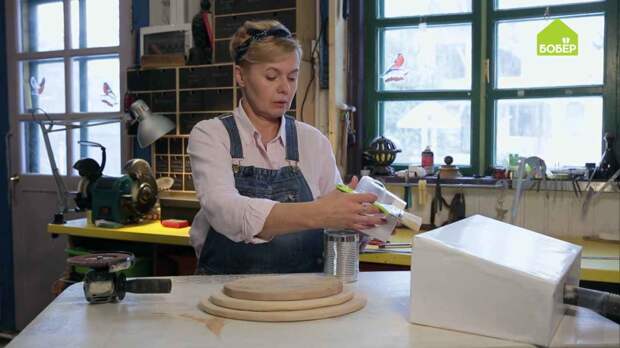 Возьмите белую водоэмульсионную краску и воду и сделайте очень жидкий раствор, которым необходимо тонировать все заготовки из разделочных досок.