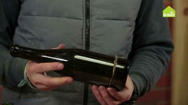 Возьмите кусок шпагата, вымочите его в любой горючей жидкости: ацетоне или бензине — и оберните вокруг бутылки в том месте, где планируется сделать рез, укладывая витки как можно плотнее друг к другу.