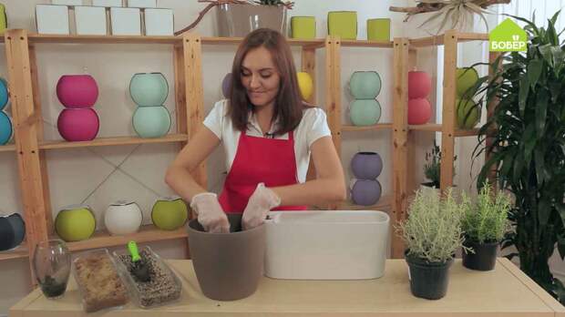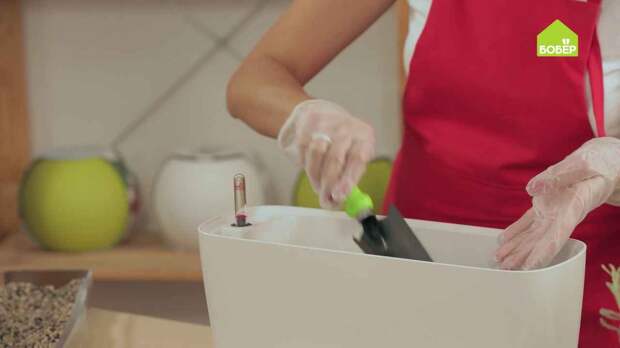 Наденьте перчатки и насыпьте на дно кашпо дренаж слоем 2-3 см. Рекомендуется использовать гидропонный дренаж, которые даёт растениям столько влаги, сколько им необходимо.