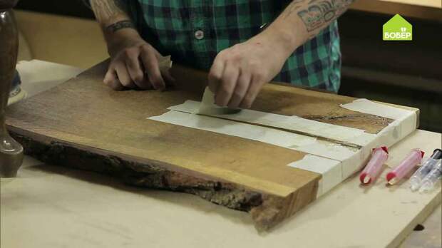 Эпоксидная смола скрепит столешницу, а также придаст ей определённый шарм.
