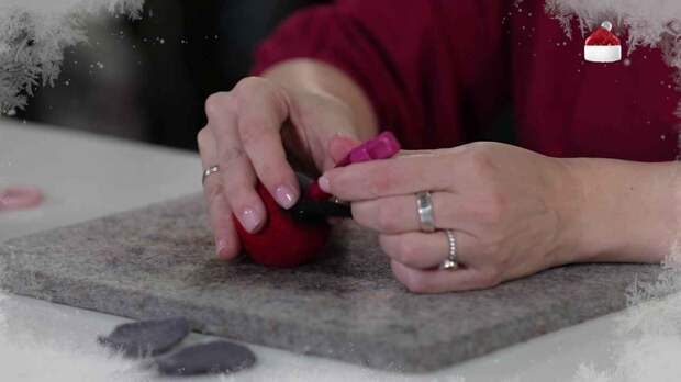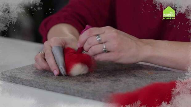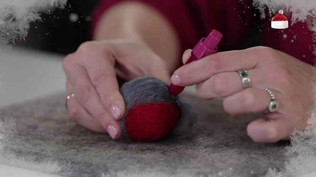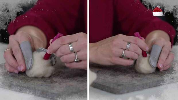 Выложите заготовку на подложку, возьмите иголку для валяния и начните протыкать полученный комок шерсти. В процессе волокна переплетаются между собой и не дают шерсти расползаться.