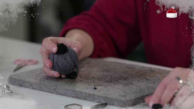 Из небольшого моточка чёрной шерсти смастерите голову, которая должна плавно переходить в туловище. Обратите внимание, что при уплотнении шерсть немного уменьшается в размерах.
