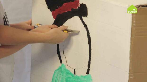 Когда коробка полностью высохнет, при помощи карандаша нарисуйте снеговика.